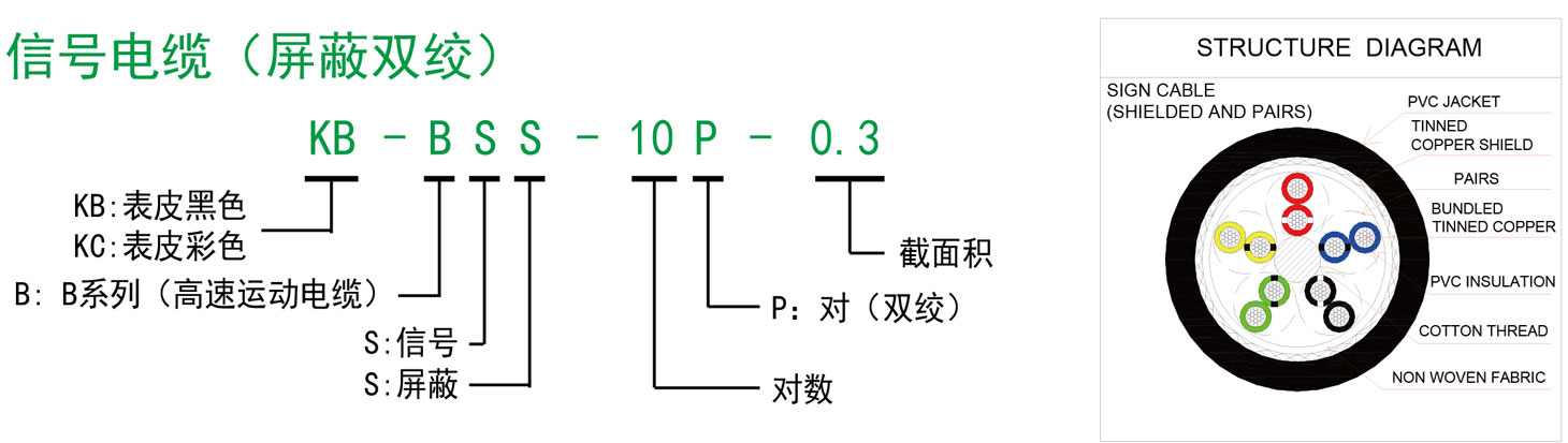 1)信号电缆:多股超细镀锡纯铜丝(0.08平方铜丝绞合,单次绞合)。